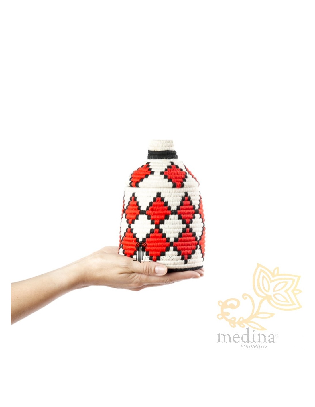 Boite vintage tissée No.1, boite traditionnelle marocaine communément utilisée comme panier de stockage et de conservation du sucre, plantes médicinales ou fruits secs. Ces pots aux motifs vintages sont le résultat de longues heures de travail minutieux, un travail artistique exceptionnel.