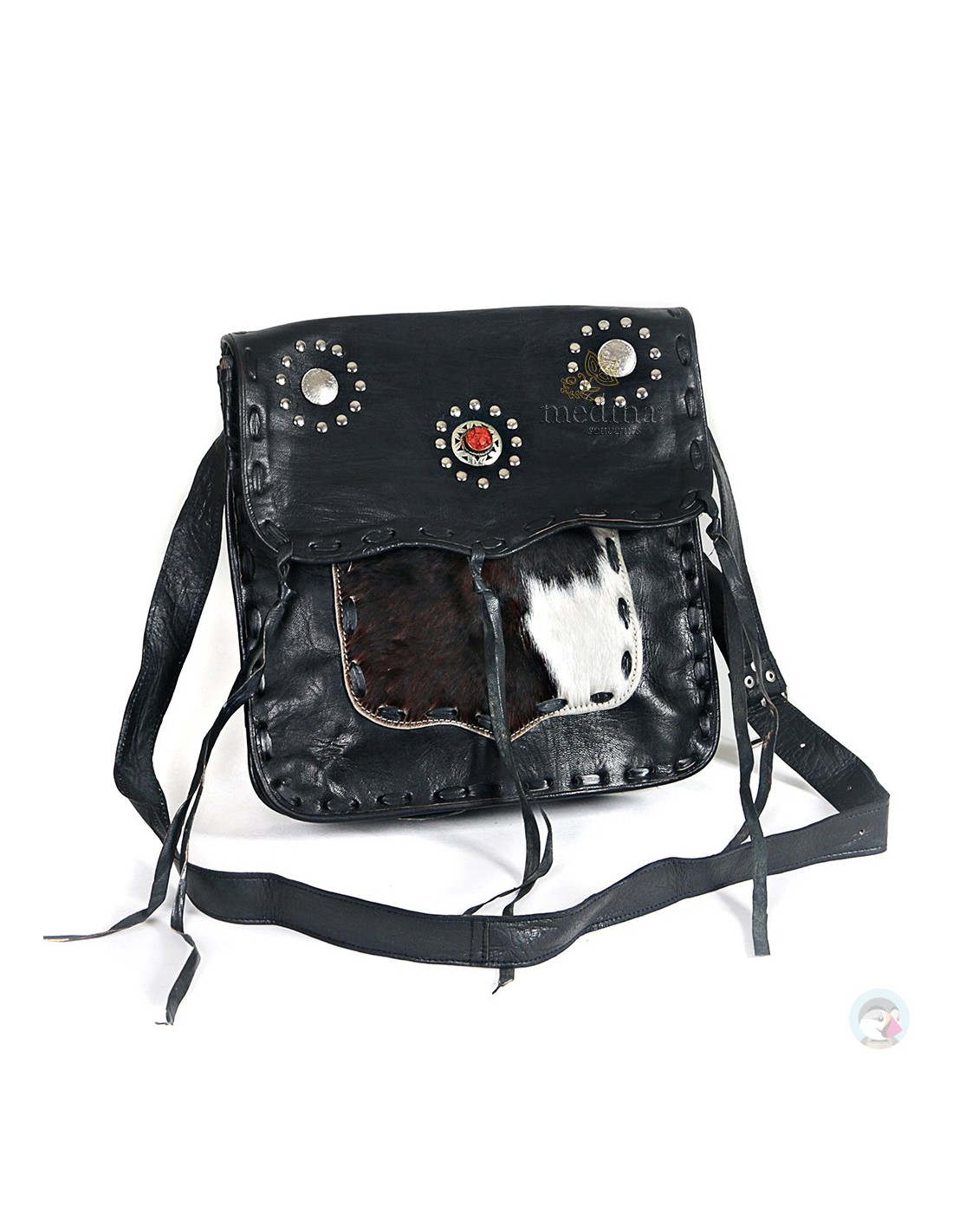Ce sac en cuir est le produit d'un travail artisanal très pointilleux. Fait en cuir véritable de couleur camel et décoré avec du pelage de vachette, ce sac sait se distinguer par son caractère à la fois brut et bohème.