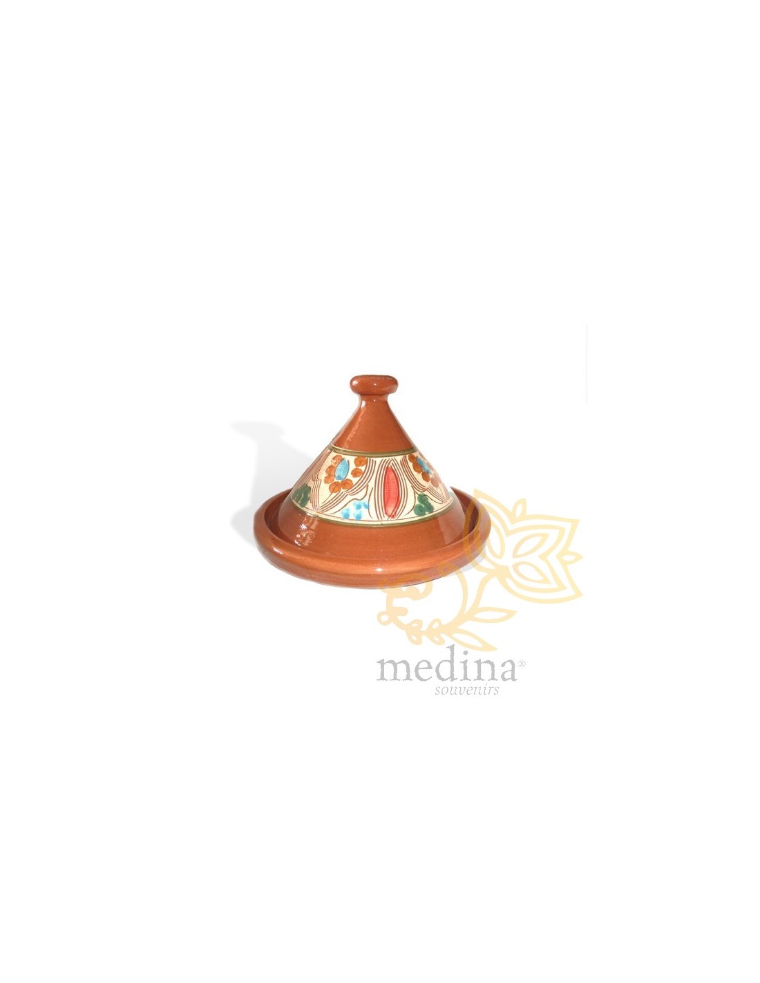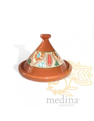 Tajine en terre cuite décoré avec un motif émaillé à la main.